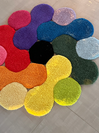 Quelques heures et petites erreurs après, mon tapis est fait. Je fixe ma laine à ma toile avec de la colle forte, et le laisse reposer. La découpe ensuite pour terminer avec les finitions ; la partie la plus longue et minitieuse .Ma patience est mise à l'épreuve mais le résultat n'en est que plus beau.